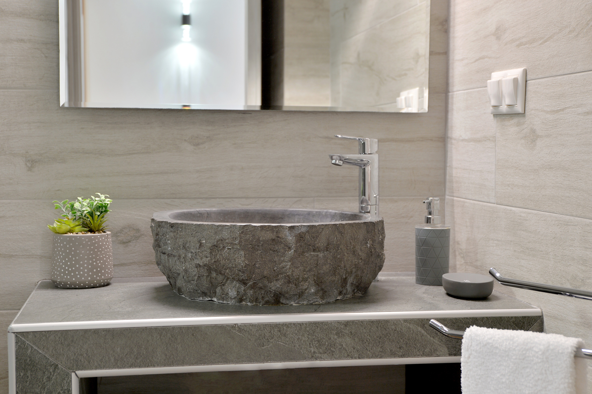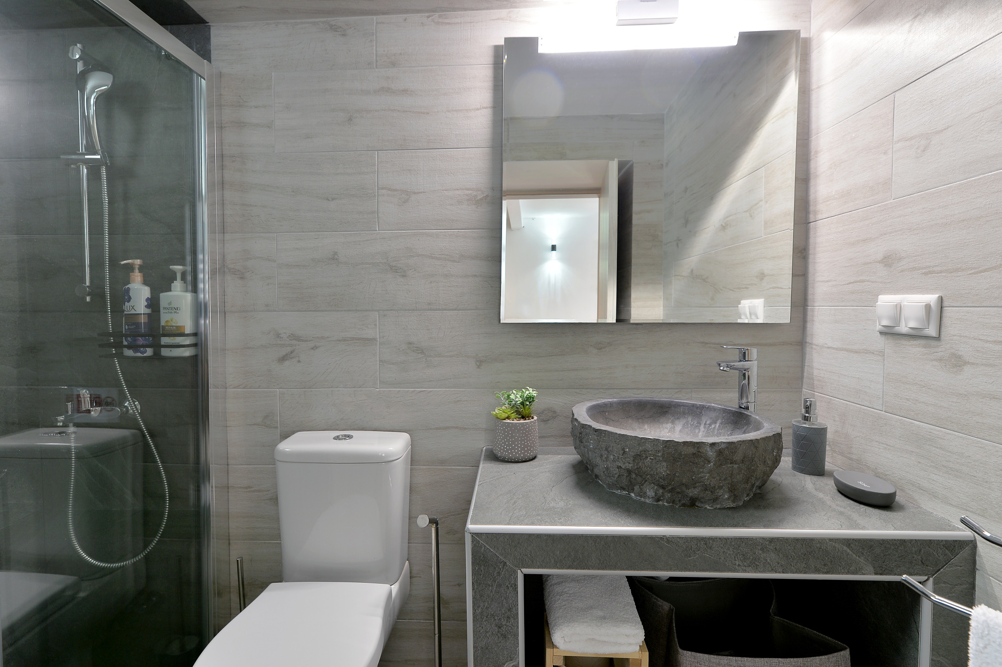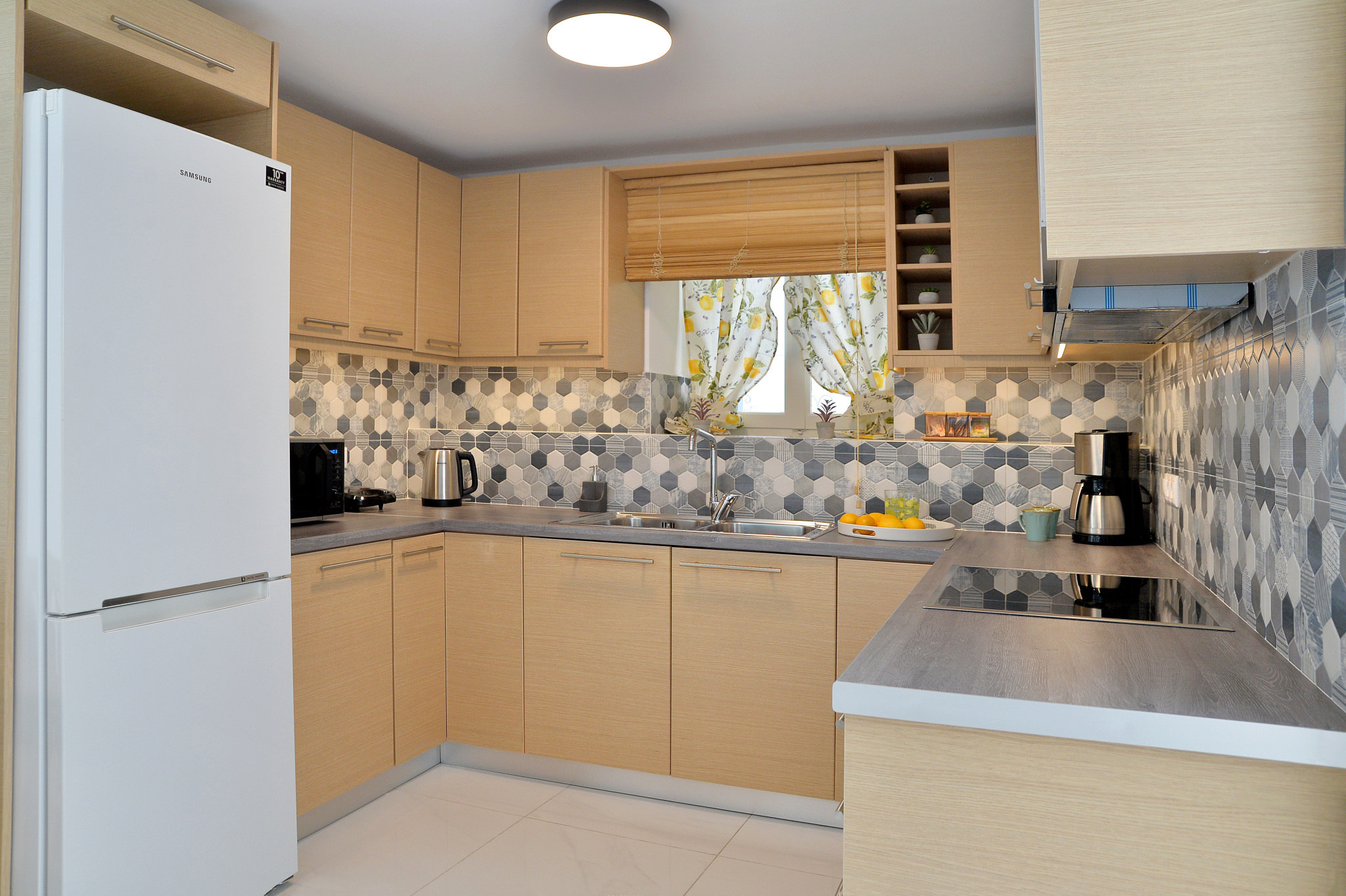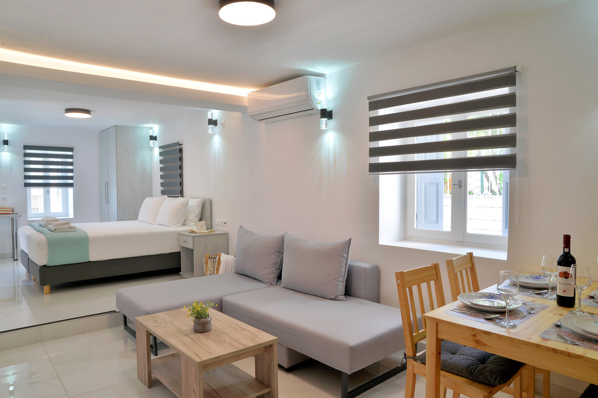 It is fully equipped with sleeping mattresses by GrecoStrom and a sofa bed by SATO, smart TVs LG 43" and 32" LED wifi with Netflix, Melitta coffee machine, microwave oven, 323 liter fridge-freezer, kitchen with ceramic hobs and oven, high quality amenities, hair dryer and all modern comforts.