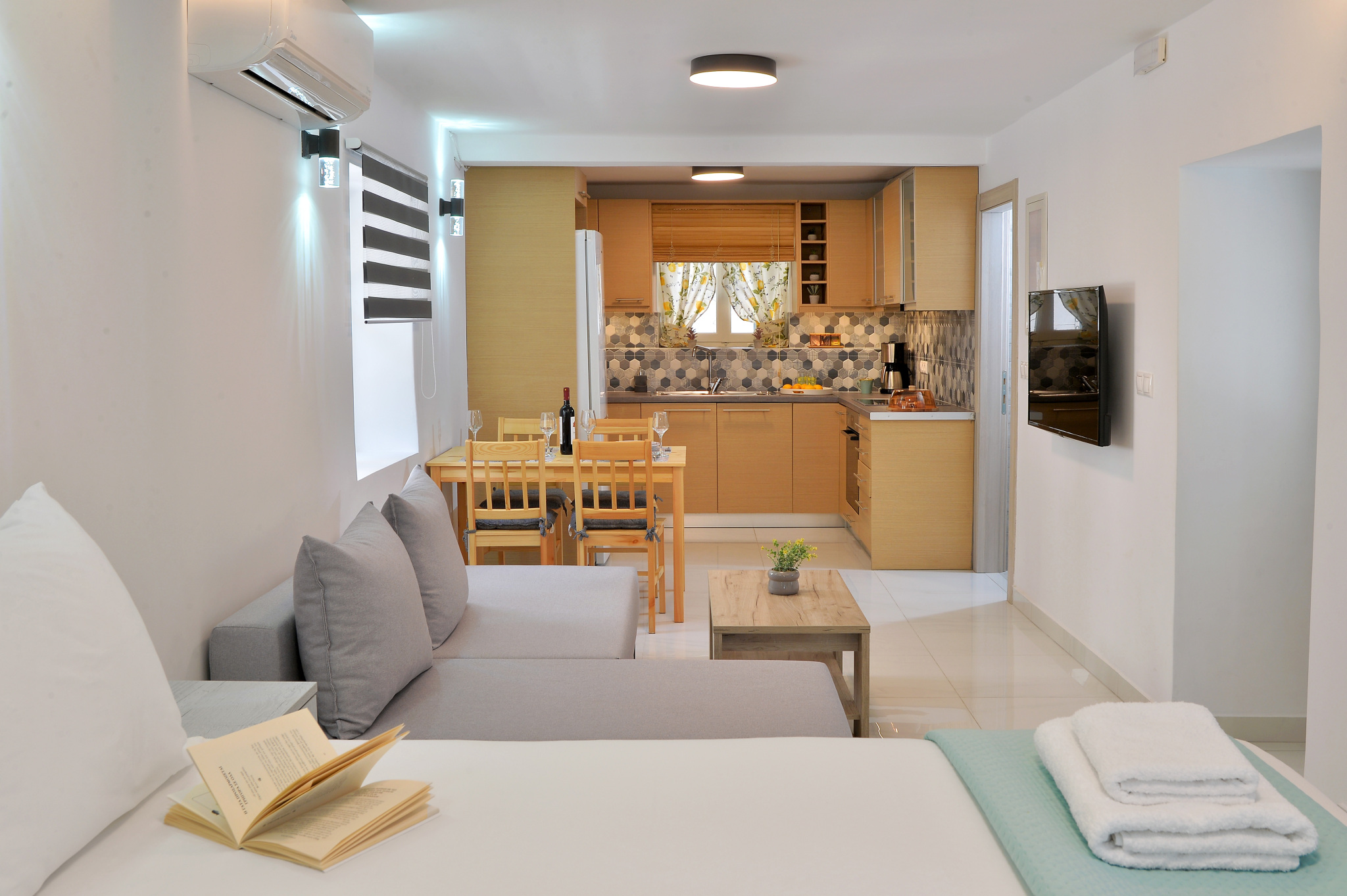 This apartment was renovated in July 2023 and is located on the ground floor of a traditional stone house. The space is single with bed, living room and kitchen. It has an outdoor courtyard.